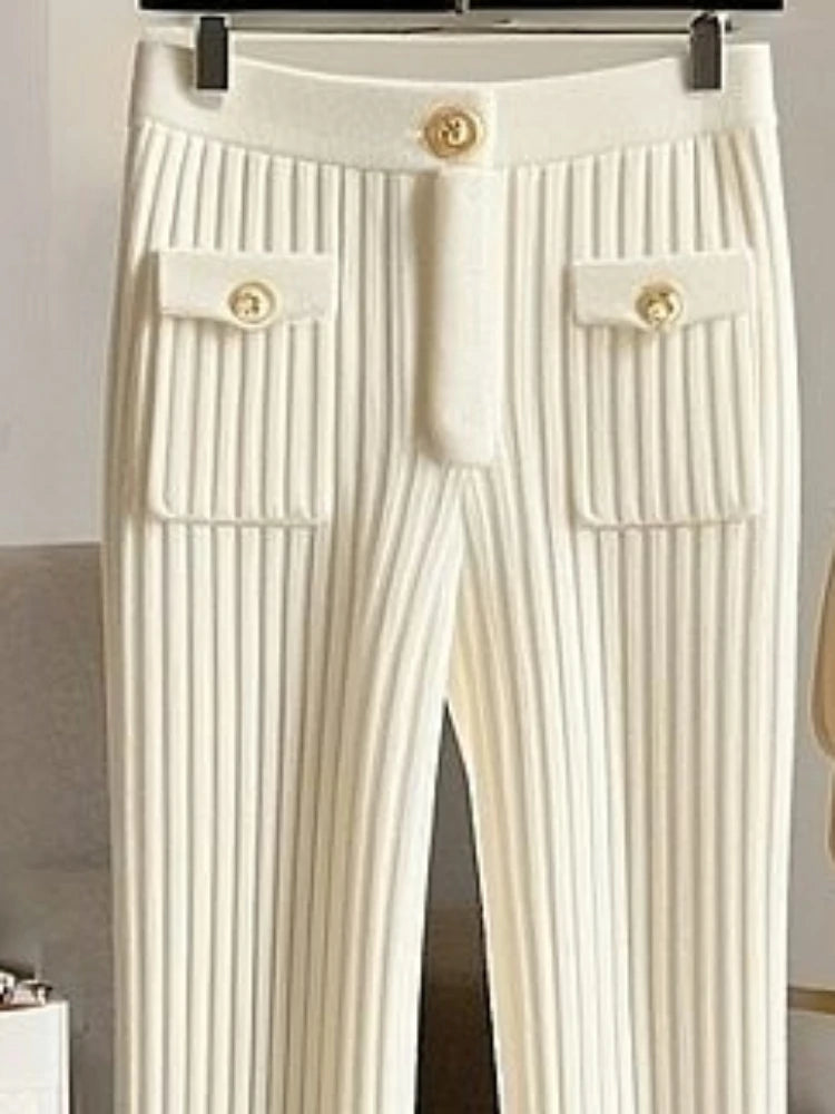 New Bottoms Fashion Flare Pants for Women High Waist Slim Fit Knitted Trousers Korean Casual Pantalon Femme Y2k Clothing