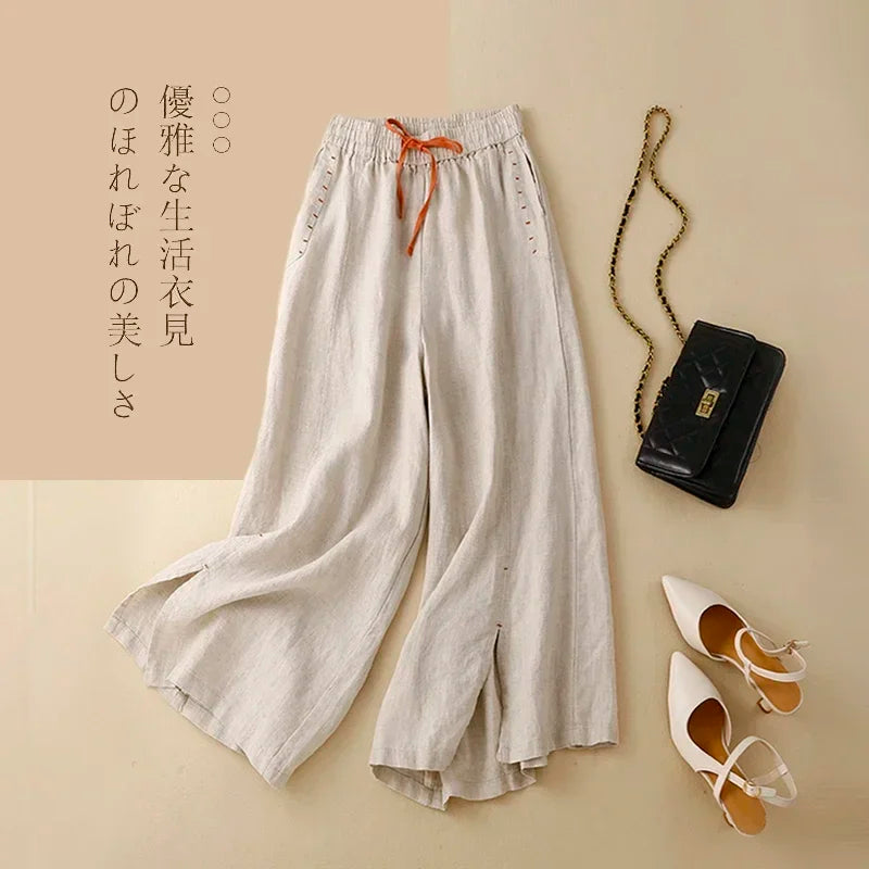 Gray Cotton Linen Casual Elastic High Waist Loose Wide Leg Women's Pants Ankle-Length Pants For Women Clothing Fashion