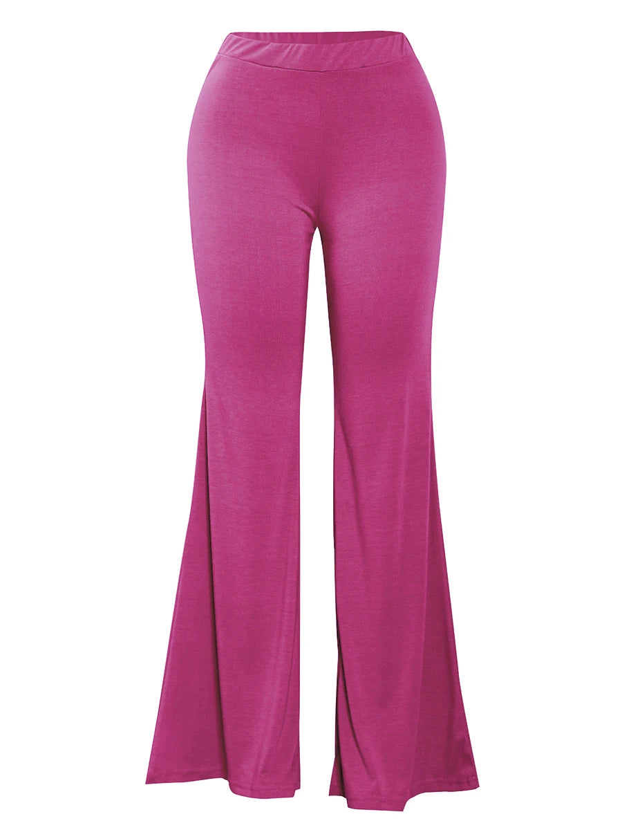 LW Plus Size High Waist Flared Stretchy Pants Summer Skinny Solid Casual Rose Red Pants For Women Bell Bottom Trousers
