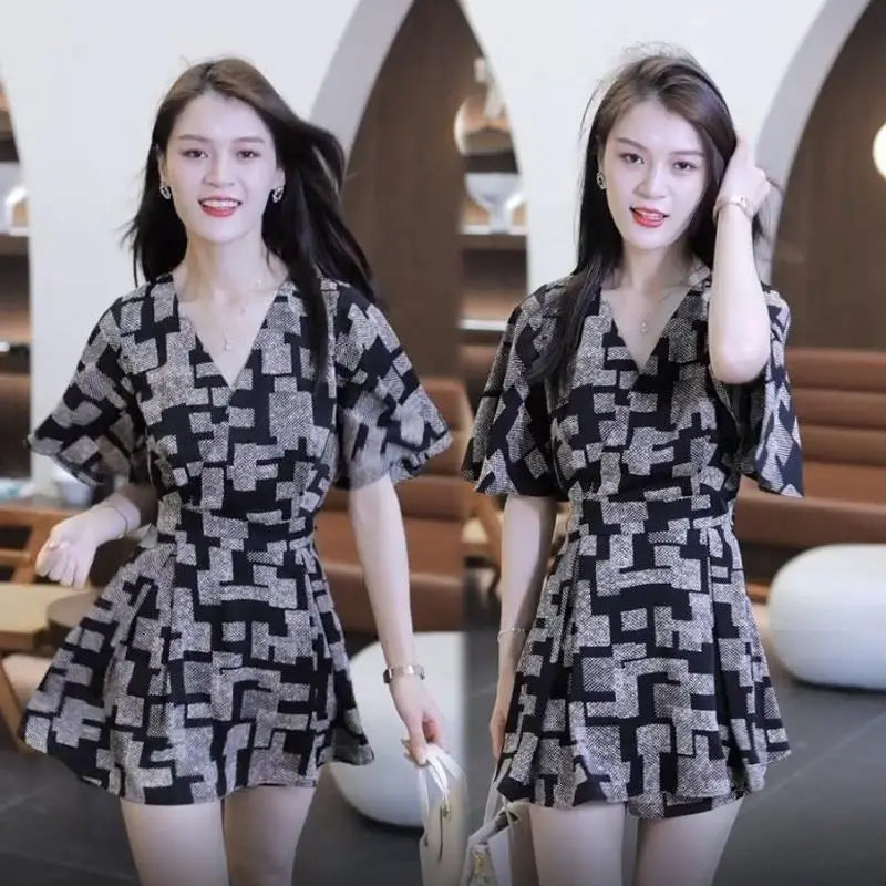 Women's Fashion Print Suit Summer New Western-style Long Tops Shirts And Shorts Two Piece Sets For Women Plus Size Clothing