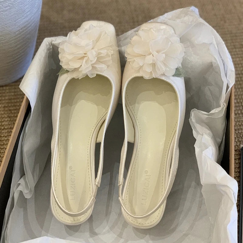 Flower Summer Sandals for Women Shallow Comfort Low Heel Dress Shoes Ladies Fashion Designer Footwear Female Zapatos De Mujer