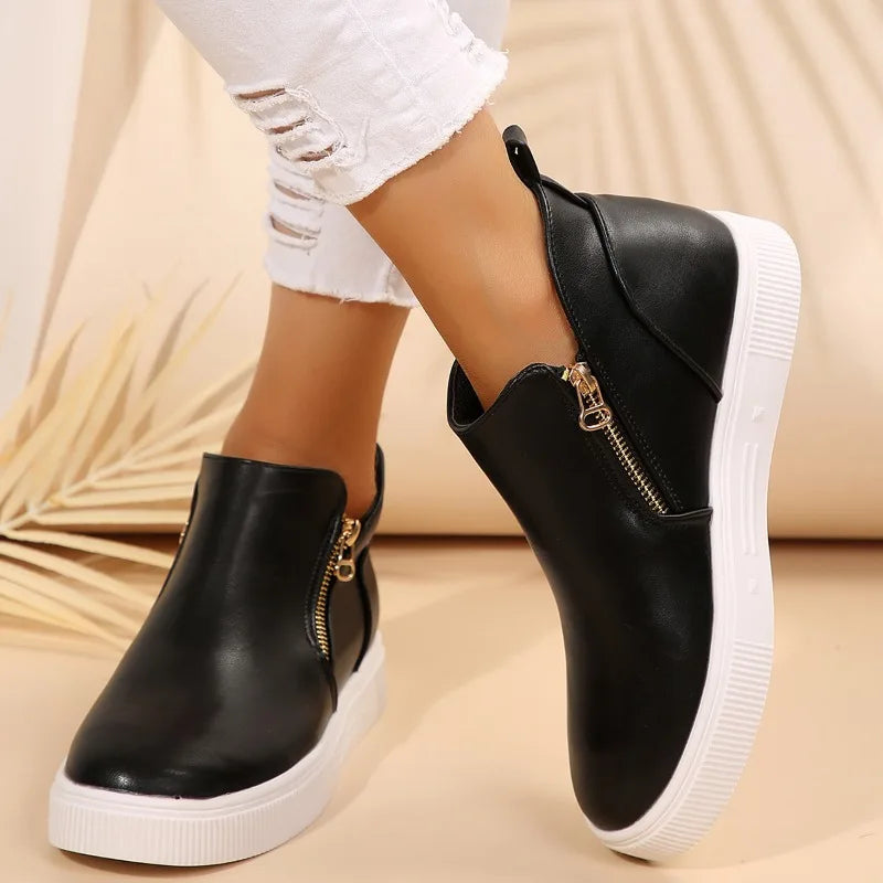 Inside Heightened Single Shoes Autumn New Round Toe Side Zipper Platform Non-Slip Wear-Resistant Flats