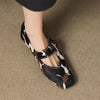 Leopard Pattern Shoes for Ladies Square Toes Flat Heels Front Strap Female Ballets Sewing Lines Womens Shallow Chassure Femme