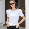Plus Size Puff Sleeve Basic T-shirt Women Loose Short Sleeve Knitted Shirts Female Solid Tees Ladies Summer Tops Harajuku New