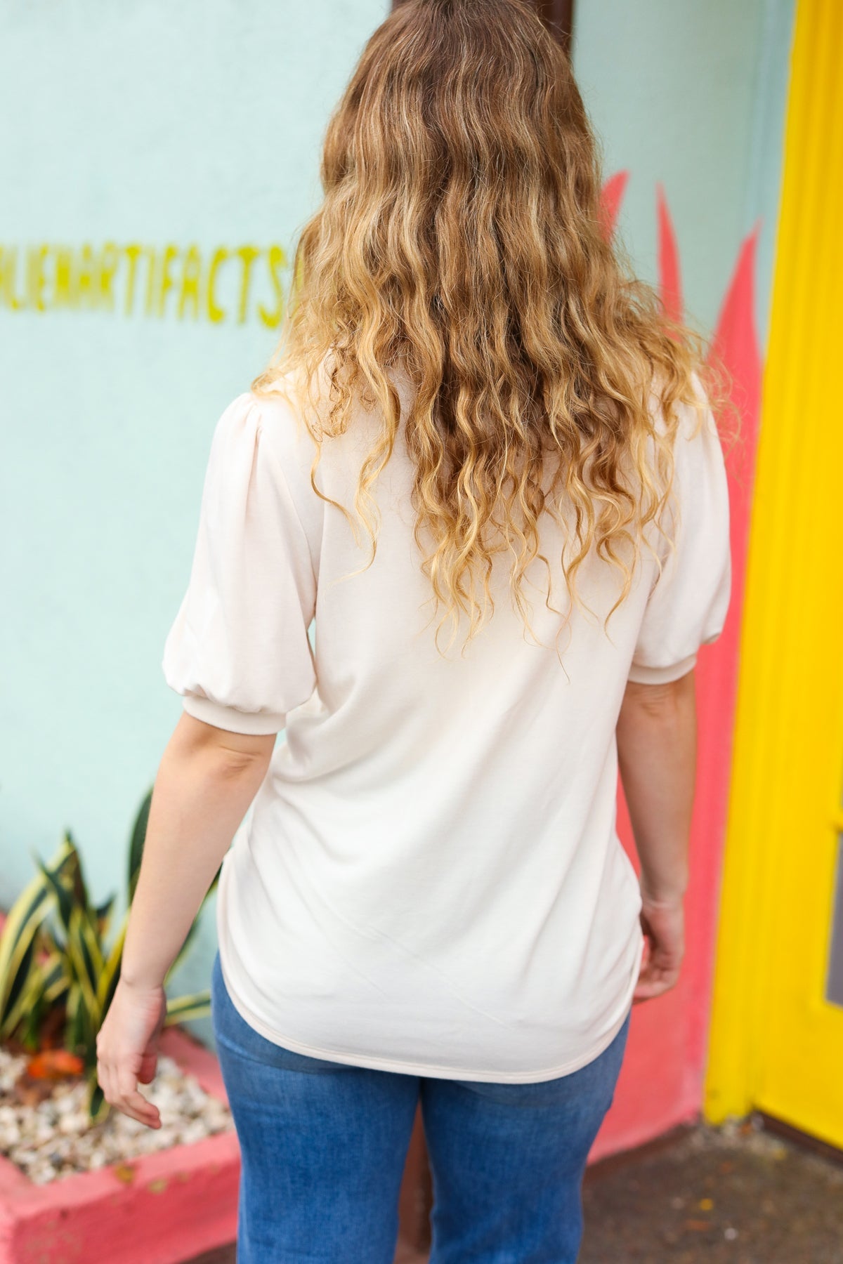 Stay lucky with this cream French terry top that features puff banded sleeves and a four-leaf clover sequin decal. The perfect St Paddy's Day top.