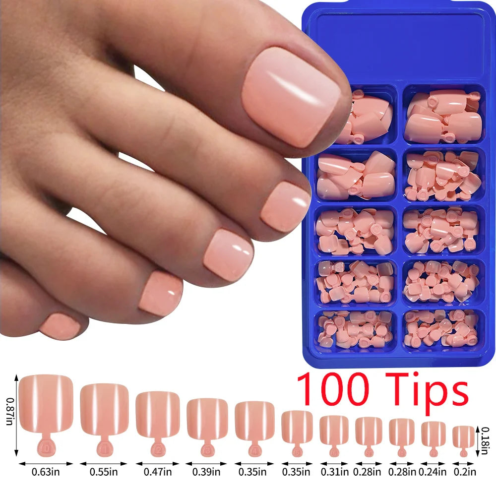 1 Pack Toenail Tips - Short French Tip Press On Toenails 100/120Pcs Pink Soft Gel Tips