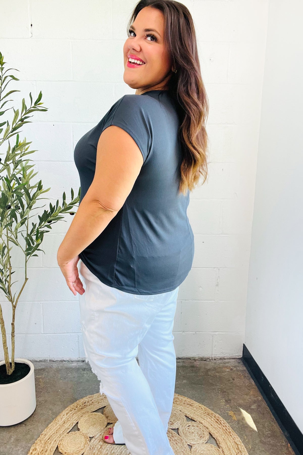 Charming In Charcoal Asymmetrical Shirred Modal Top