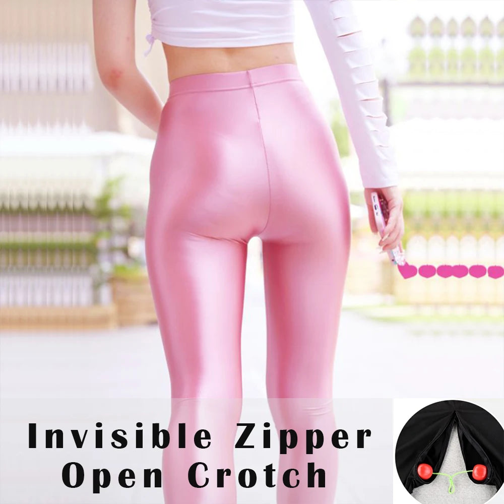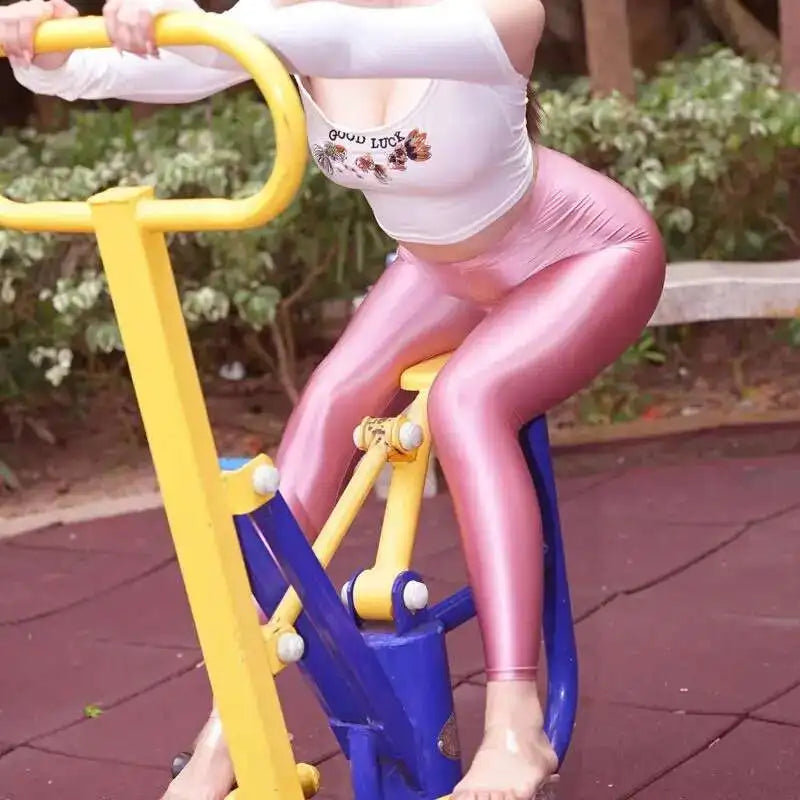 Glossy See Through Women Yoga Leggings Plus Size High Waist Leggings Workout Pants for Gym Tight Bottoms