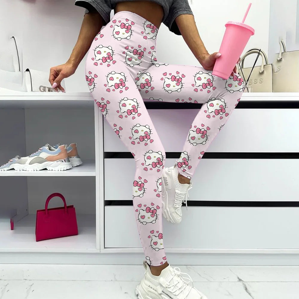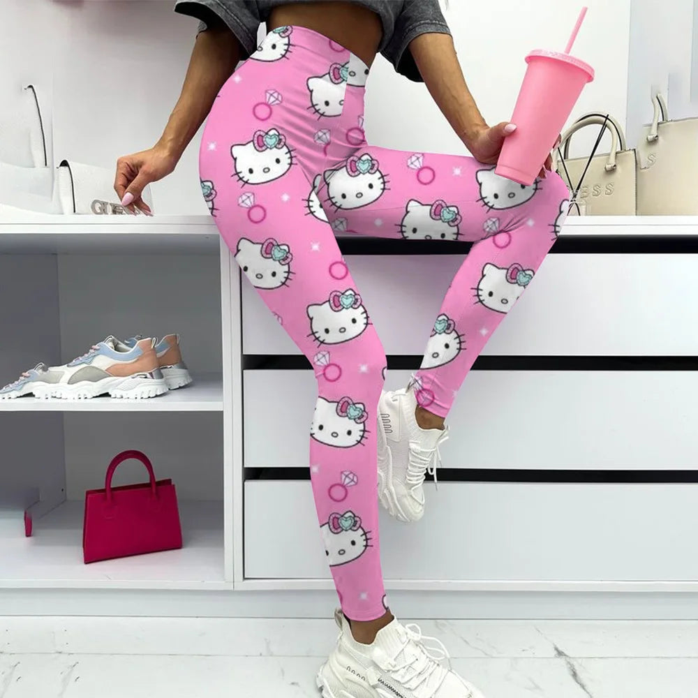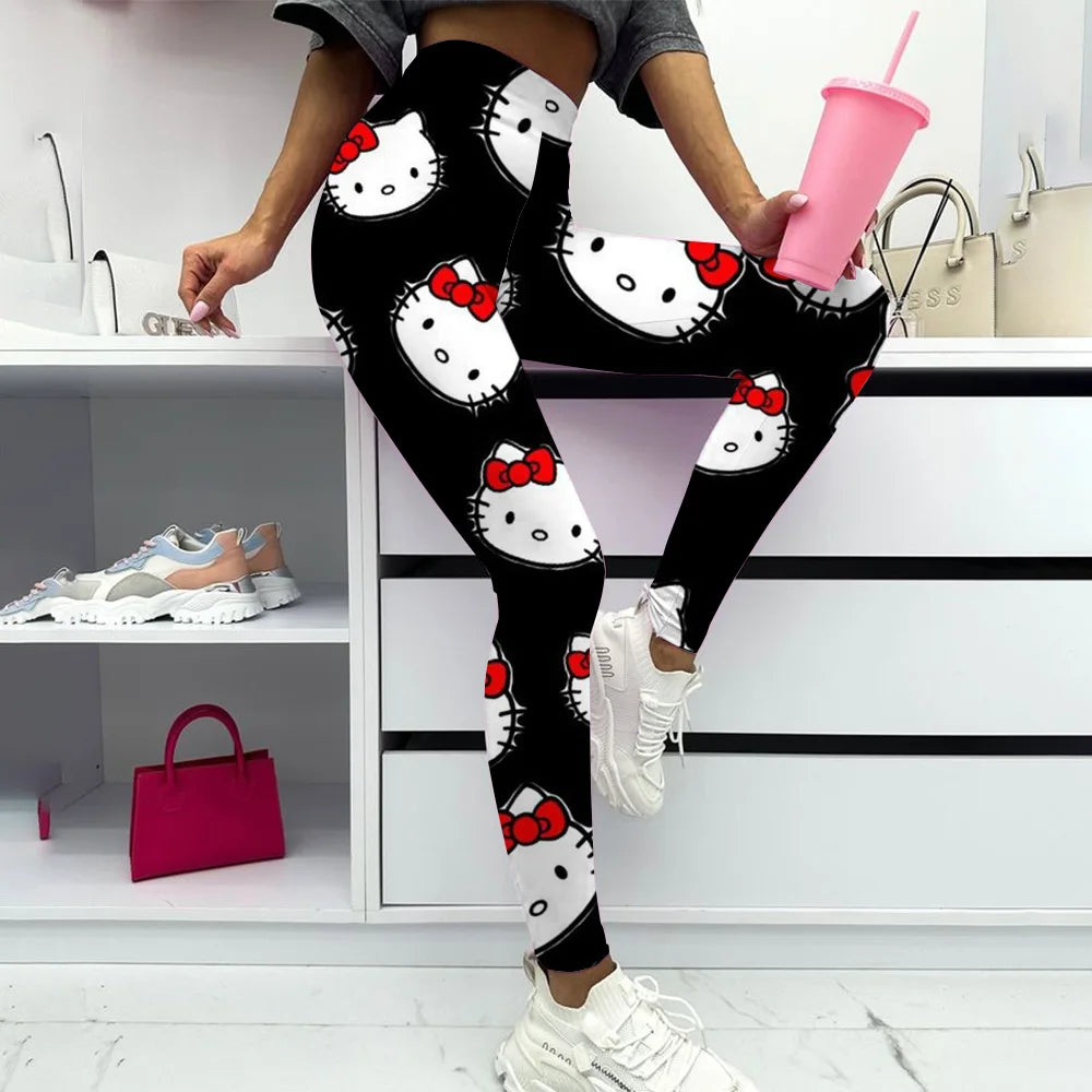 Hello Kitty print Yoga Pants Gym Leggings Women Girl Fitness Soft Tights High Waist Elastic Breathable No T Line Sports Pants