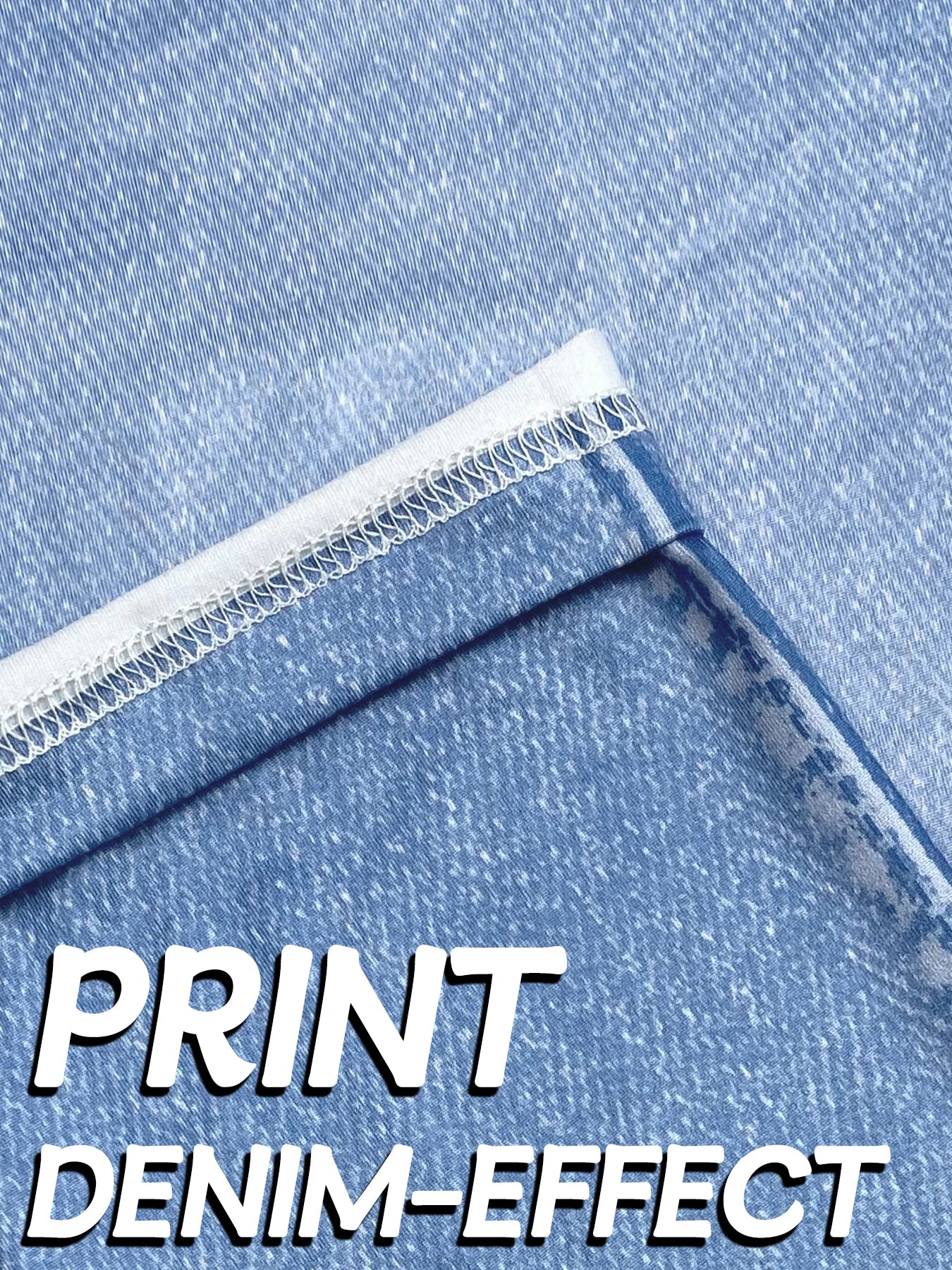 Plus Size Faux Denim Printed Leggings with Fake Distressed Detail Comfortable Soft and Fashionable Knit High Stretch Sports Pan