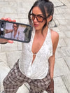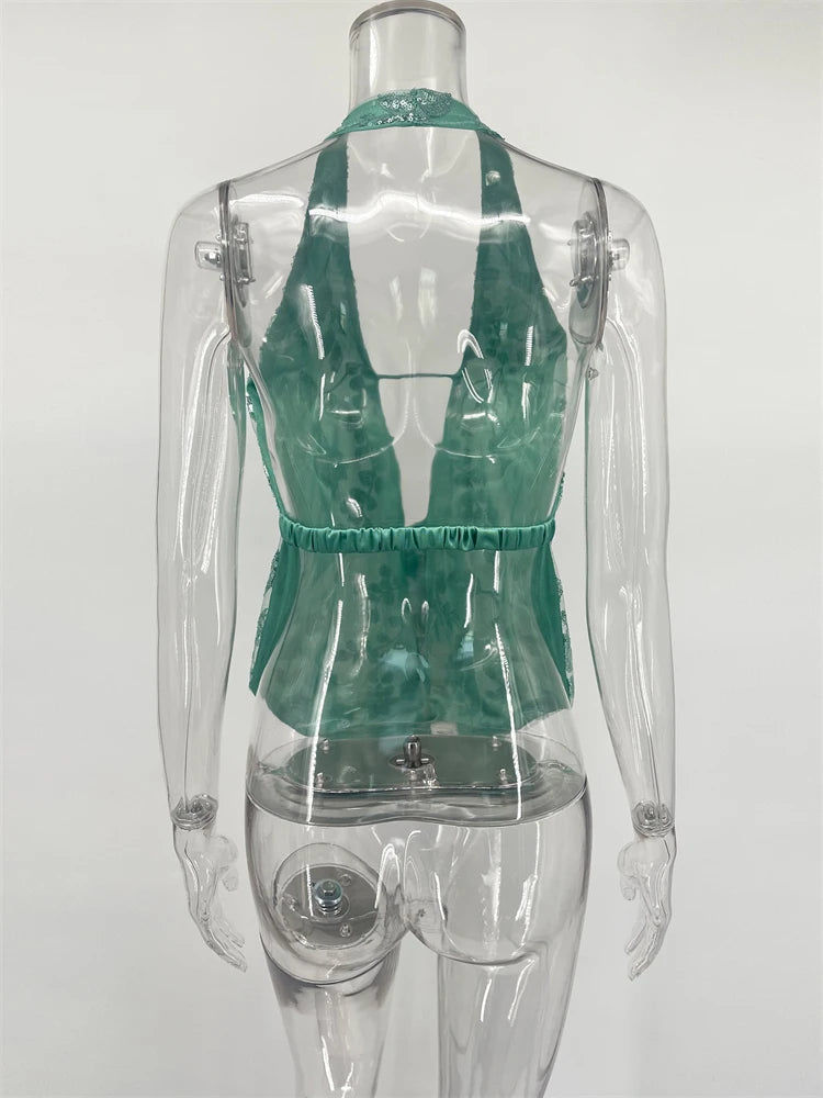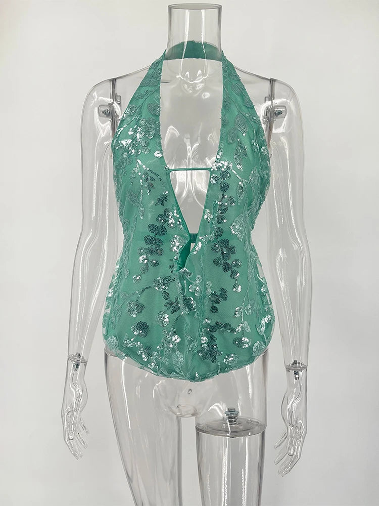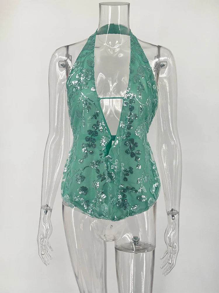 Trendix Sexy Deep V Neck Beach Tank Top Hot Girls Summer Sequins Patchwork Sleeveless Vest Women Vacation Sexy Backless Top