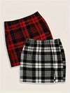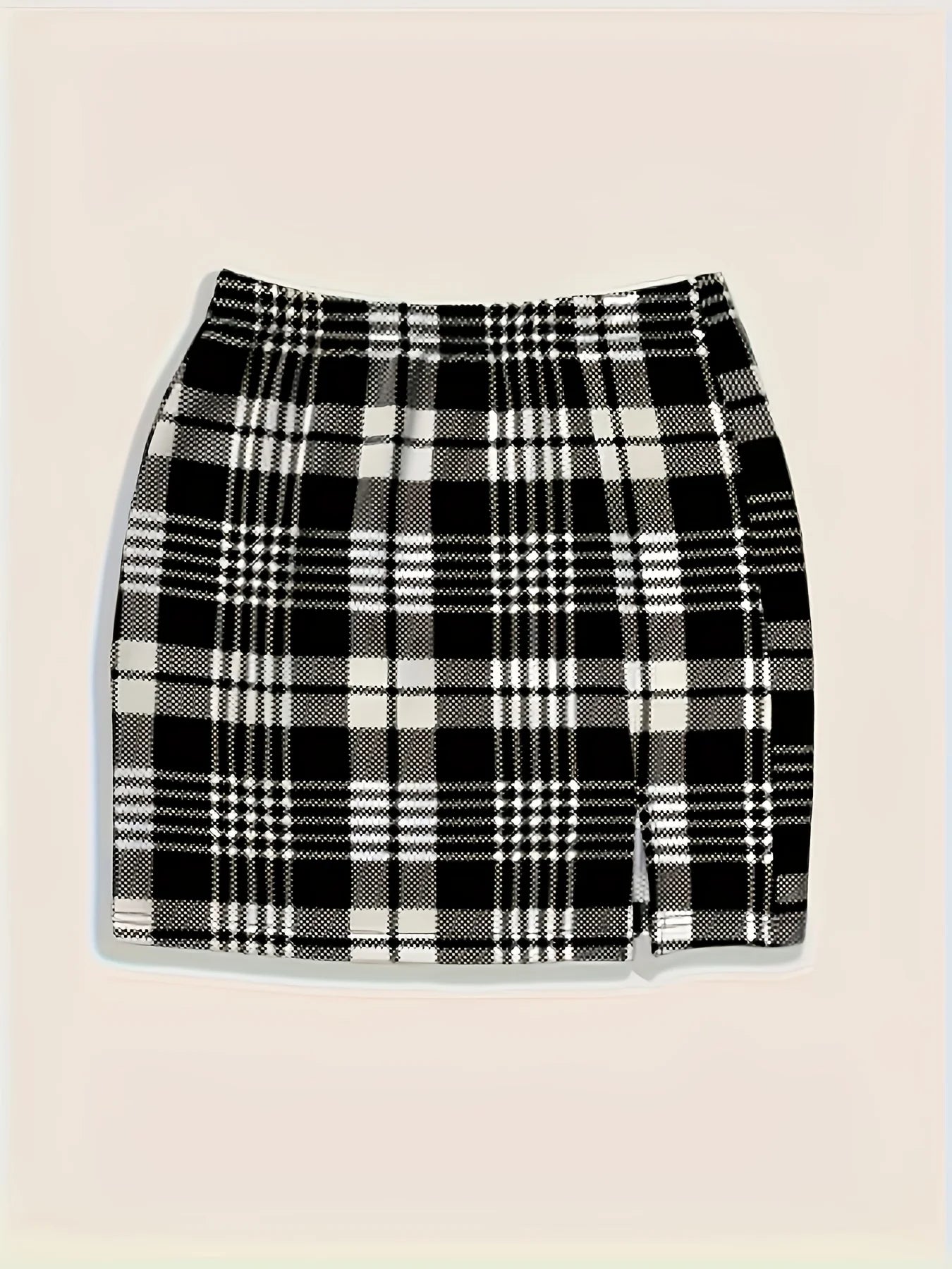 Women's fashionable new plaid casual versatile women's large-size skirt two-piece set