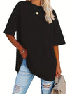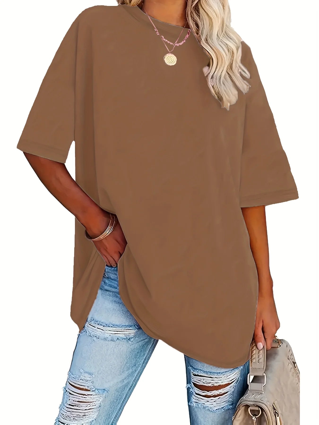 Women's Plus Size Crew Neck Solid T-Shirt Summer Female Basic Soft Tees Women Casual Round Neck Short Sleeved Tops