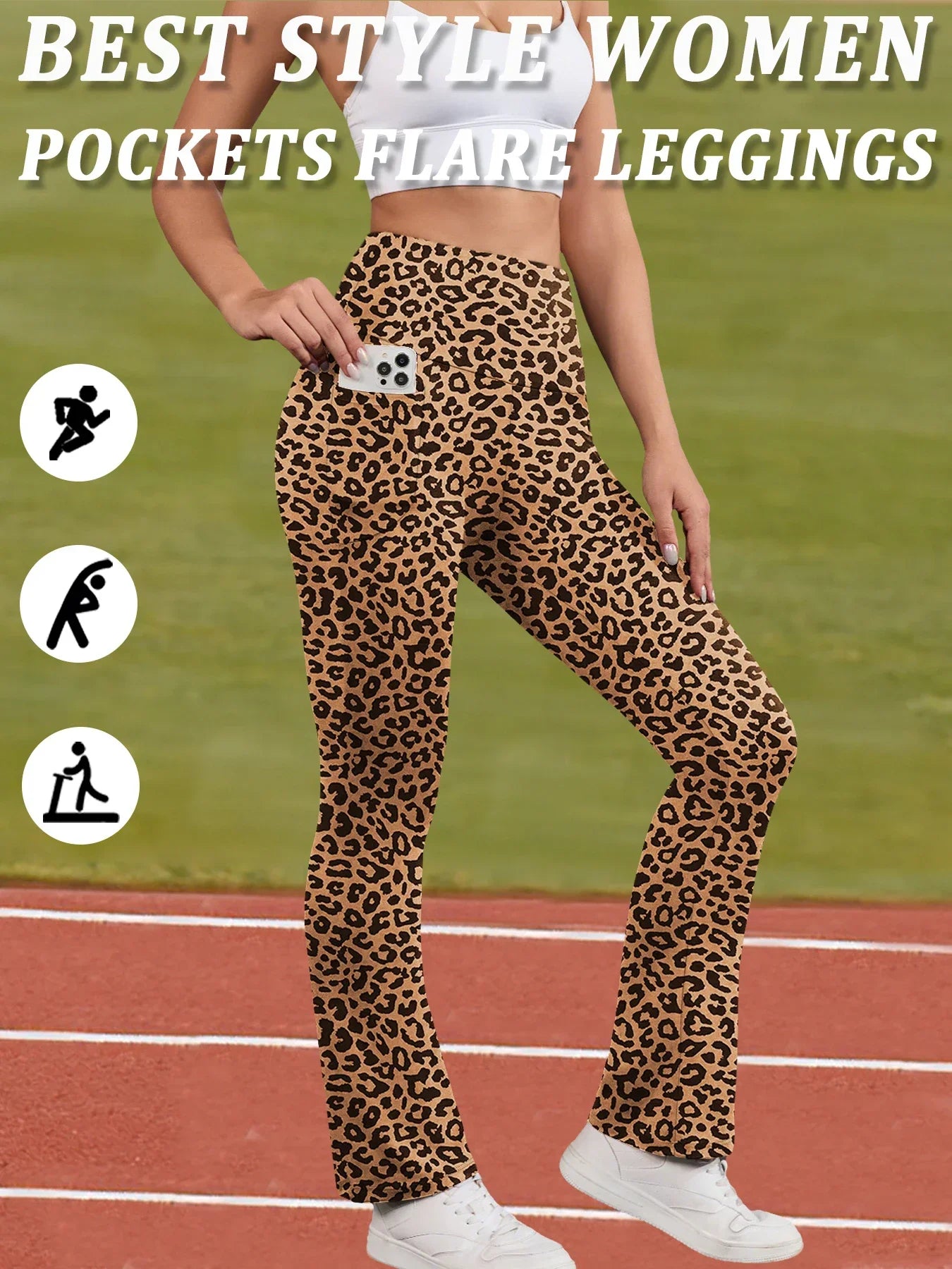 Women's Super Soft Flare Pants with Pockets High Waisted Tummy Control Workout Yoga Push Up Gym Fitness Leggings Bell Bottoms